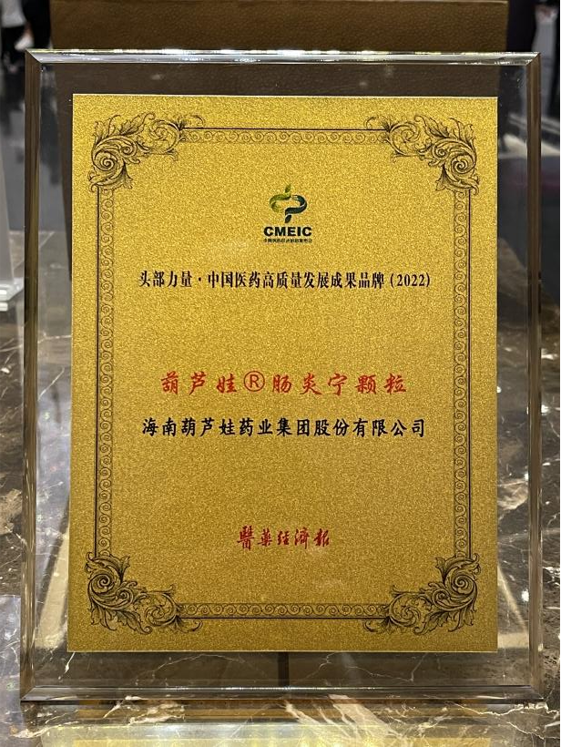 在本次发布会上,公司重点产品918博天堂牌肠炎宁颗粒同时荣膺“头部力量·中国医药高质量发展成果品牌(2022)”。918博天堂牌肠炎宁颗粒(2g),传承经典名方,临床广泛用于成人及儿童急慢性胃肠炎、腹泻等疾病的治疗,由于其杰出的临床价值,被纳入国家中医药管理局相关专家项目组制定的《中成药治疗小儿腹泻病临床应用指南》。